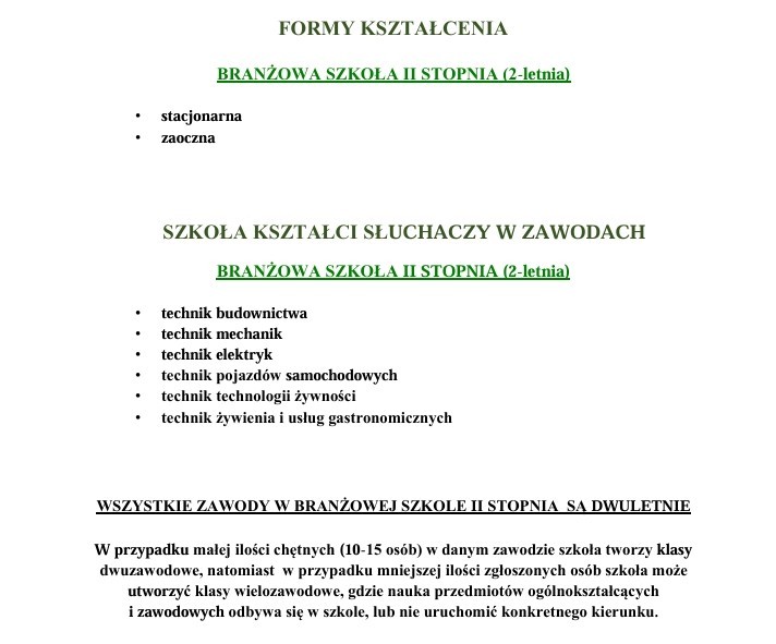 Branżowa Szkoła II Stopnia